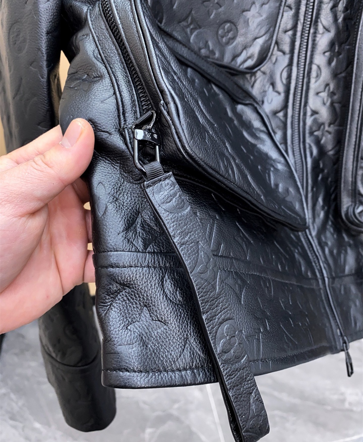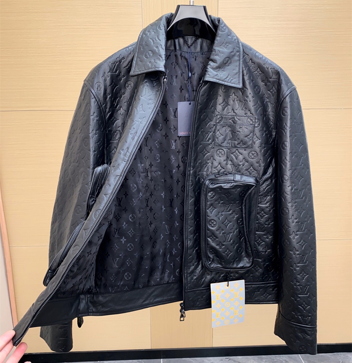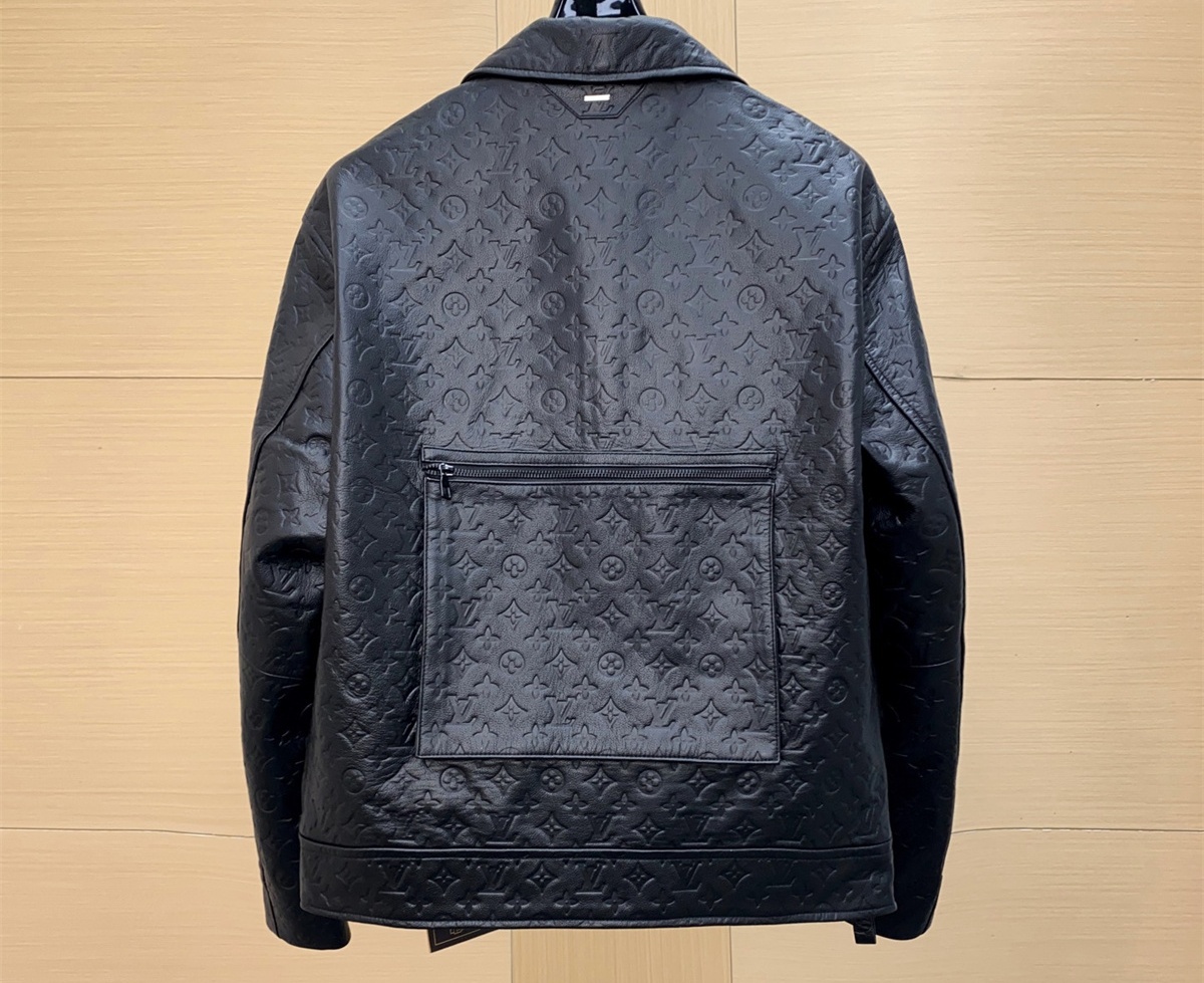 LV Louis Vuitton Cowhide Leather Black Pockets Jacket, ( S - 3XL)